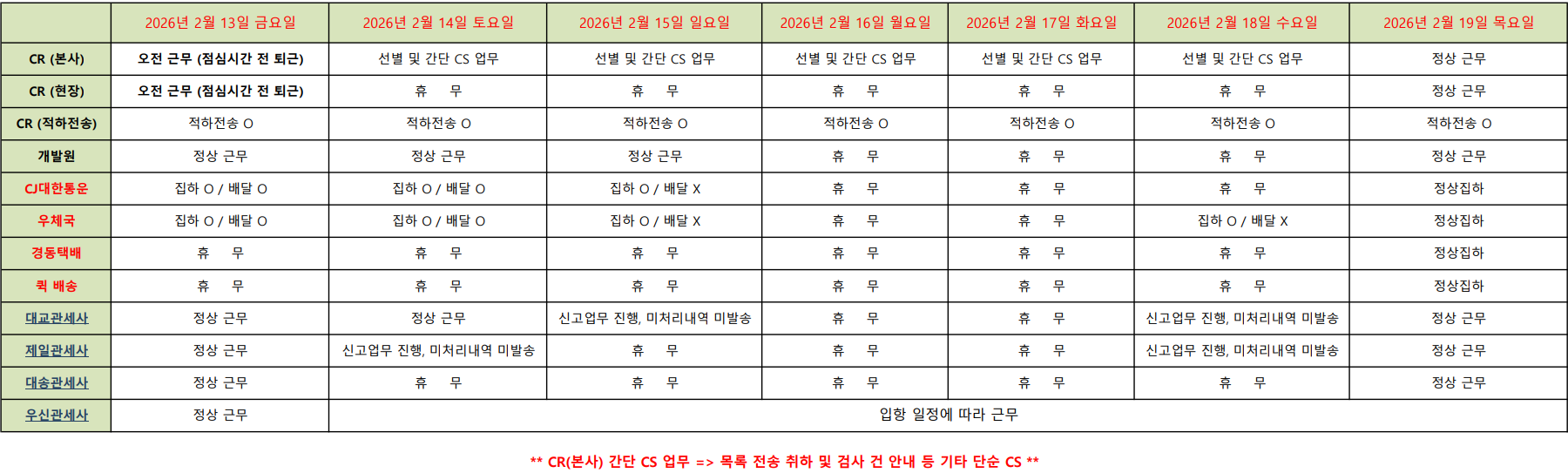 한국 휴무와 상관없이 출고는 평상시와 동일하게 진행될 예정이며